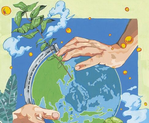 鳥獣被害対策のため、隠れ場所となるササ籔をノコギリや剪定ばさみで除去する除伐作業...