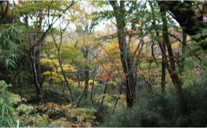 「箱根の自然と美術の共生」をめざし、寄贈された緑地。ブナやヒメシャラなどが生い茂る。