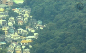 一色台地の上の住宅地と市街地を結ぶ斜面緑地。三ヶ岡山緑地に隣接している。