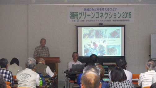 今年度の「湘南グリーンコネクション2015」を寒川町で開催しました。主な内容は、講演会とみどりの実践団体による活動発表、パネル展示です。