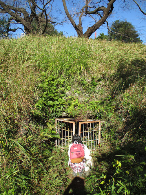 コース途中には久野古墳群があり、講師の初瀬川さんからそれぞれの古墳について説明していただきました。参加者は熱心に耳を傾け、写真を撮ったり、古墳全体を眺めたりしていました。また、四号古墳では石室の中を見学することが出来るので、暗い石室の中をドキドキしながら覗いていました。
