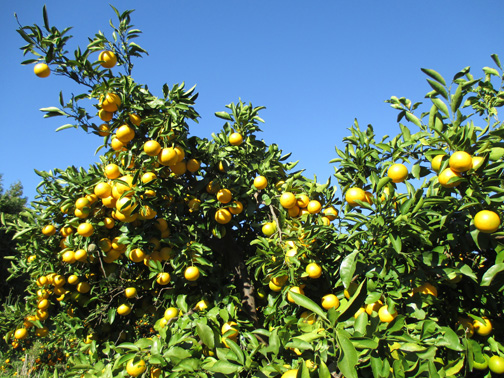 ミカン園の鈴なりミカン