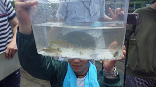 オイカワとヨシノボリ(稚魚)の入った水槽