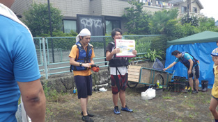 かわ道楽学生スタッフによる川の入り方や安全に活動するための注意点等の説明
