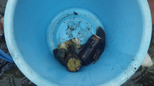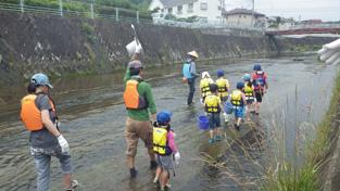 観察会を始める前に、クリーンナップを行い各自川の深い場所や滑る場所を確認しました。一見きれいに見える川でもたばこの吸い殻をはじめ、空き缶やイヤホン、靴など様々なごみが捨てられていることに皆さん驚いていました。